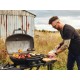 Der mattschwarze Klappwagen mit geländegängigen Rädern und Propangastankgurten lässt sich einfach installieren und kompakt verstauen.