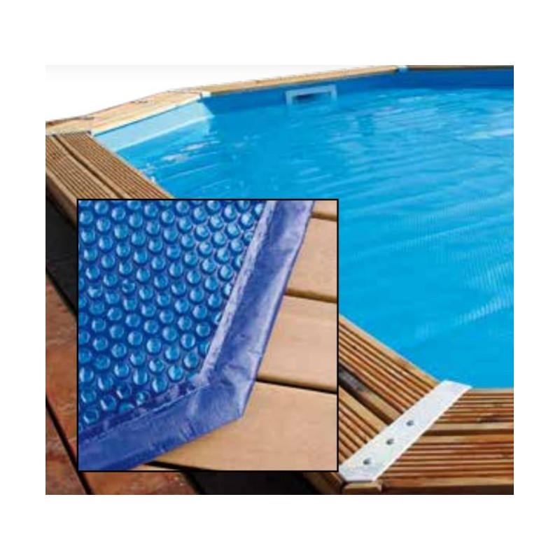 The Ubbink rectangle lined bubble cover for wooden pools maintains the heat accumulated during the day for the Ubbink Linea / Sunwater 350 x 650 cm rectangle wooden pool.