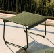 Reposapiés de acero galvanizado con asiento y respaldo de cuerda de color verde oscuro, trenzada a mano y resistente a los rayos UV.