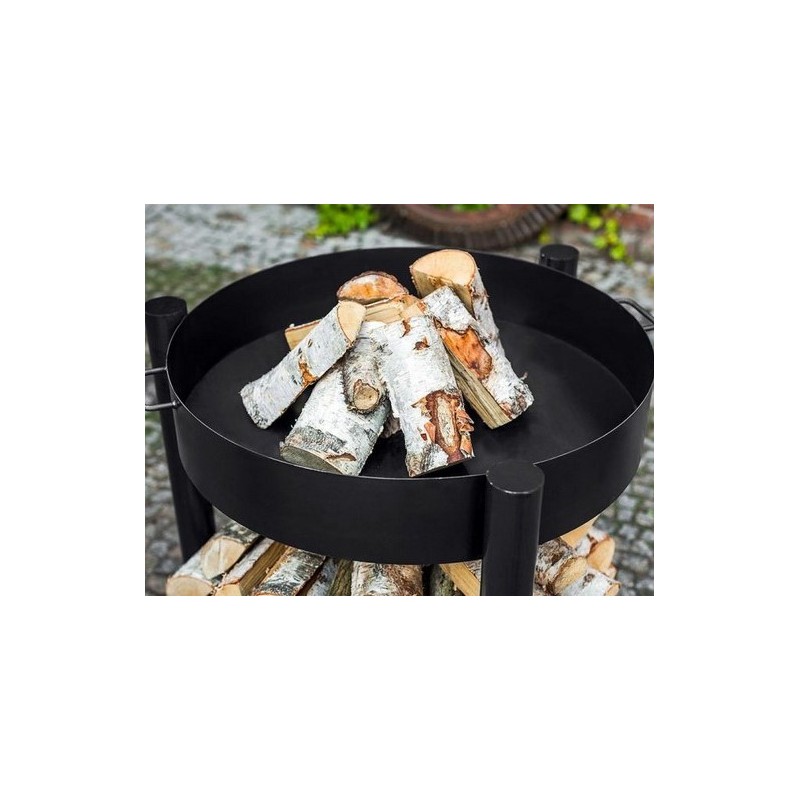 Grazie alla forma profonda della ciotola, il legno bruciato non si diffonde nemmeno in caso di forti venti e i piedini di appoggio assicurano una grande stabilità.