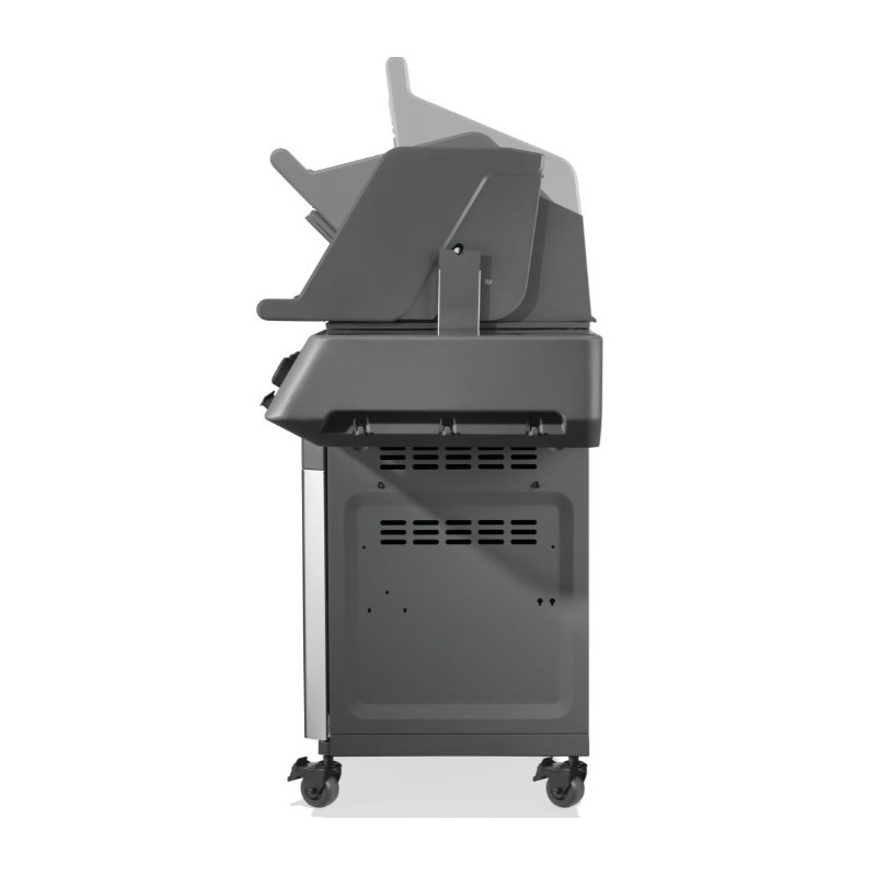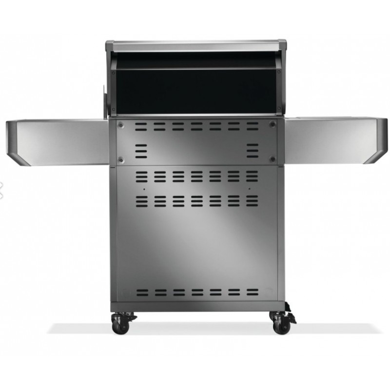 - GRANDI BRUCIATORI POSTERIORI E LATERALI: La griglia è dotata di un bruciatore posteriore più grande e di un bruciatore laterale a infrarossi di dimensioni maggiori.