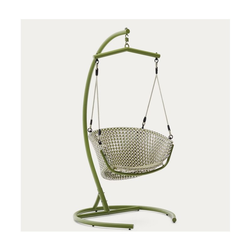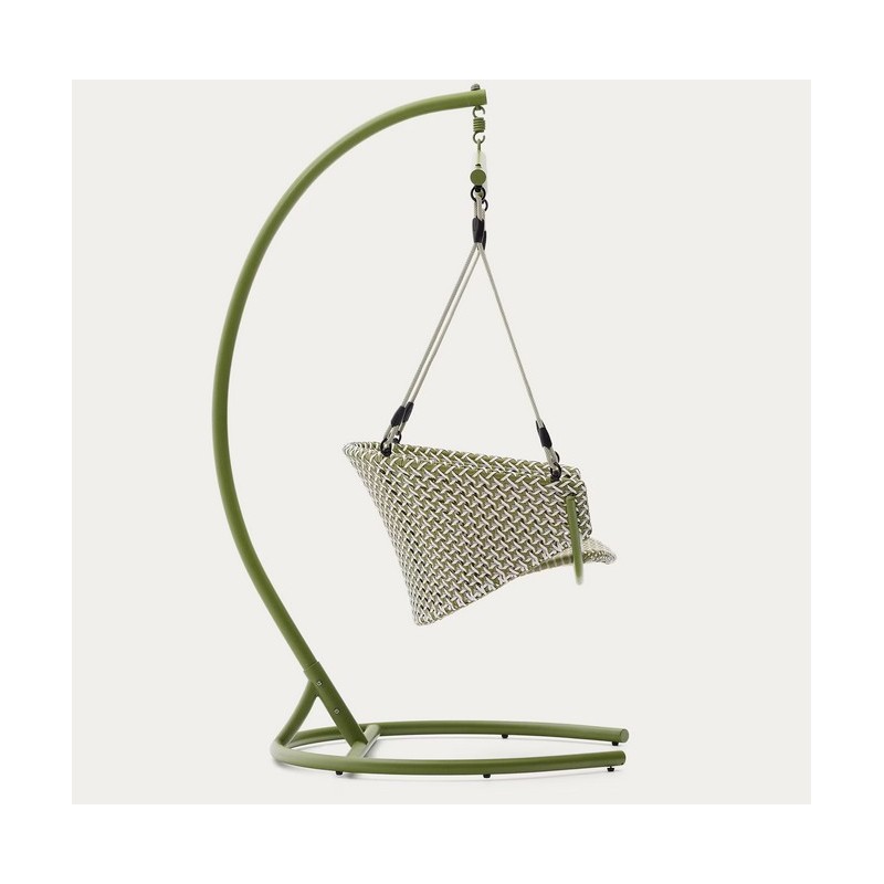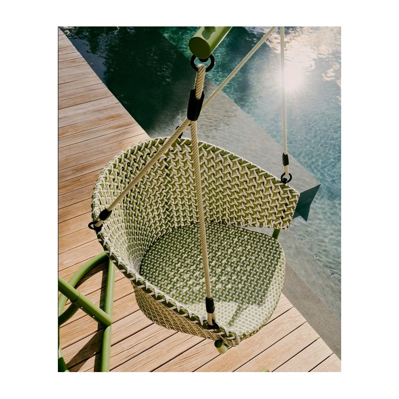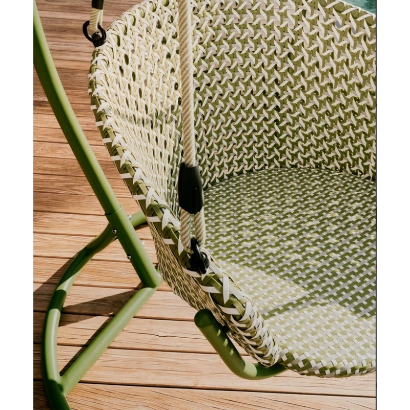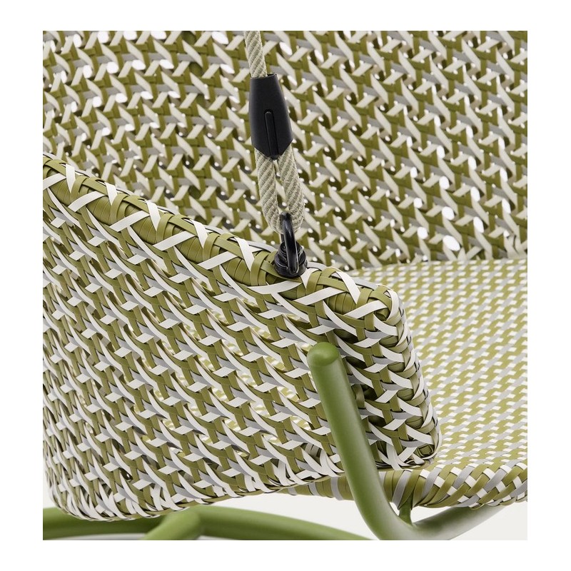 Poltrona sospesa Aliga in alluminio e rattan verde VeryForma.