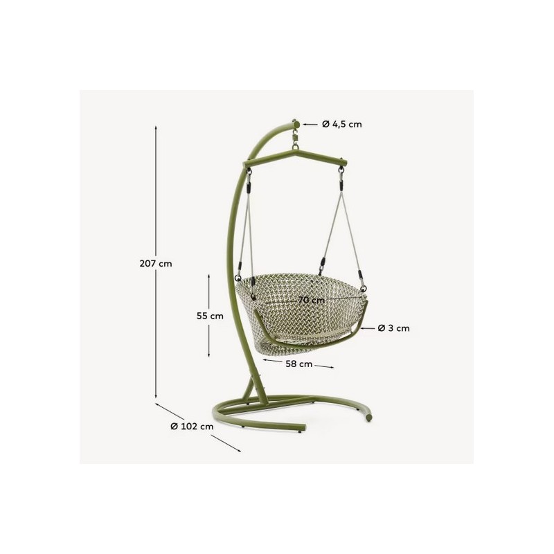 - Sedia sospesa con struttura in alluminio e rattan sintetico intrecciato a mano. Adatto per uso interno ed esterno.
